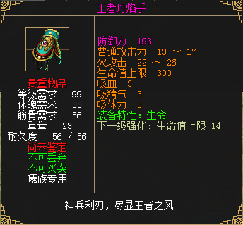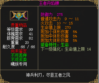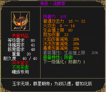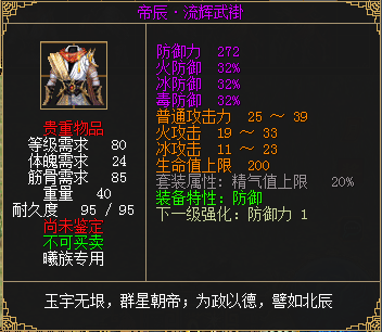 神话一样的帝辰套装和王者武器,传送在九州世界每一个英雄的口中,但是,真正见过帝辰王者的英雄极少,能够拥有他们的,更是时代中的风云人物。