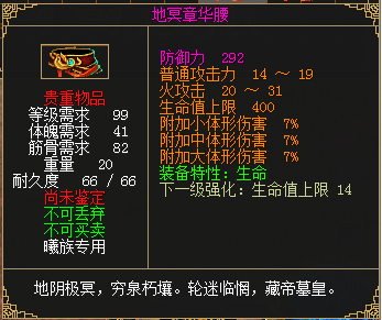 王者腰带升级为地冥腰带后,原开封属性保留,可以使用傲龙之心重洗为上限更高的开封属性(例:普攻最高5-14,火攻最高10-31)。