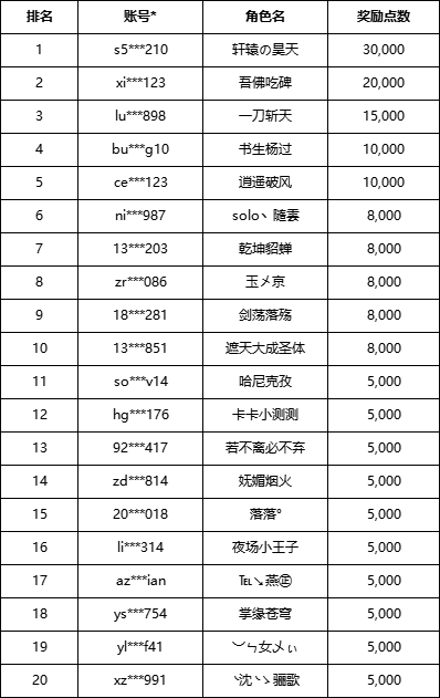 在2025年10月31日至2025年11月13日期间,在测试服开启了体验新职业活动,恭喜以下玩家获得对应奖励。