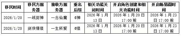 2026年1月20日以下服务器的玩家将参与移民,具体时间安排如下: