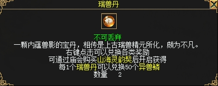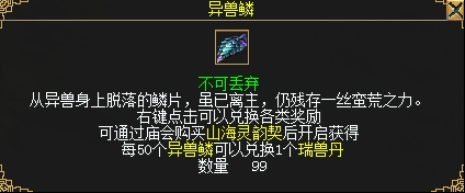 50个异兽鳞兑换1个瑞兽丹。