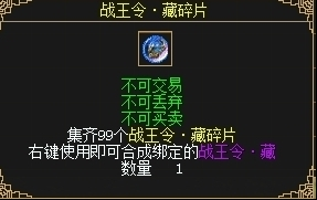 签到10天可获得:5000银两、傲龙之心(30天)*2、灵宝滋养丹*10、灵宝点化散*3、高级强化露*5、王者灵玉*1、战王令•藏碎片*5