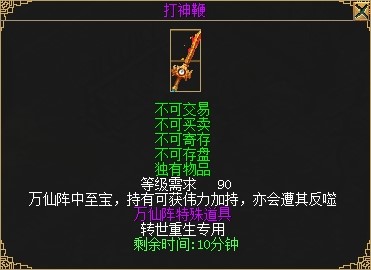 当战场进程到后期时,场景中央会出现神秘人物灵宝奇盗,它被击败后,会掉落神器打神鞭。