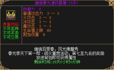 第4~6名:1个背包护符:旖旎春光晶铜徽章(15天)。