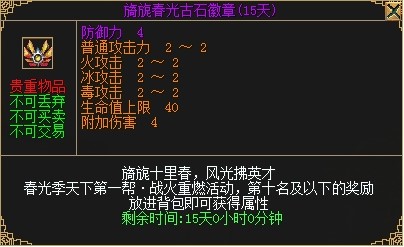 第10名级以下:1个背包护符:旖旎春光古石徽章(15天)。