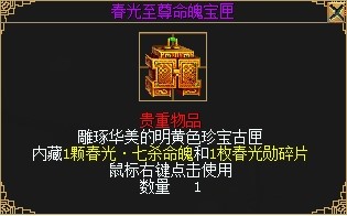 整个春光季期间,玩家共可在西凉城(138,116)周复始处领取9次奖励,且每周只能领取1次。第1次玩家可领取到1枚春光•七杀星、11颗春光•七杀晶核;从第2次开始,玩家每次可领取到2颗春光•七杀晶核、2个春光•七杀命魄、2枚春光勋碎片。