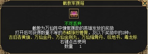 阐教玩家将获得阐教军援箱,截教玩家将获得截教军援箱。