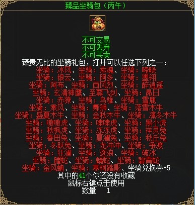 臻品坐骑包和臻品宠物包皆为任选包,奖励全部为绑定。