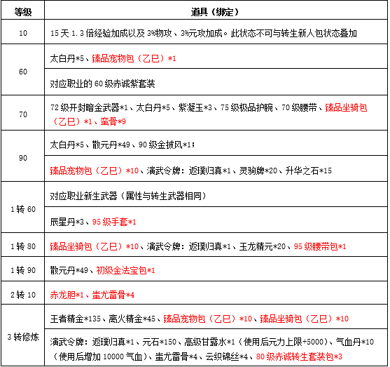 测试服更新后至北京时间2025年12月6日24点,新职业角色单次兑换100元宝及以上,即可获得绑定的太白丹*20,高级水晶念珠*1,高级琉璃念珠*1,高级菩提念珠*1以及金龙精元*20、岩龙精元*20,青龙胆。