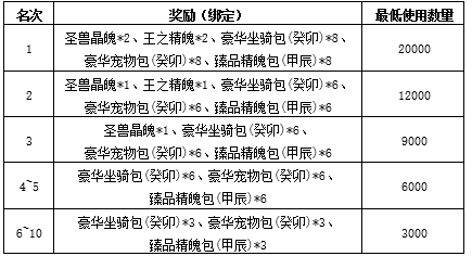 如果排名对应角色的使用数量不满足最低使用数,则奖励向下调整为满足最低使用数量档次元宝。