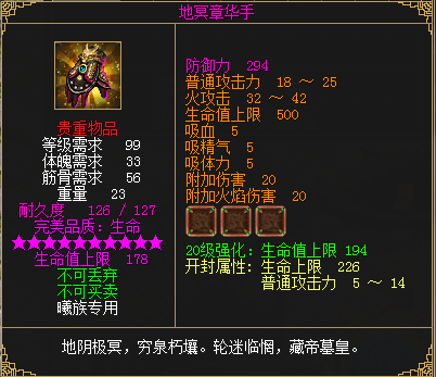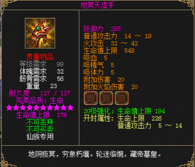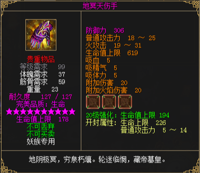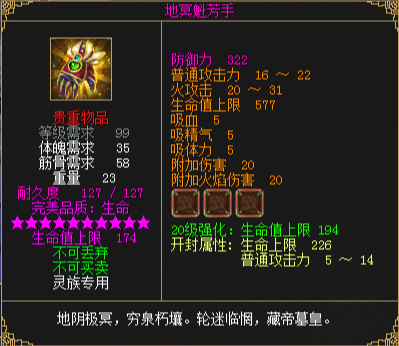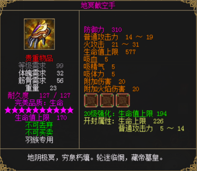 王者手套升级为地冥手套后,原开封属性保留,可以使用傲龙之心重洗为上限更高的开封属性。