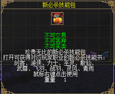 实用道具:傲龙之心、往生丹、高级顿悟丹、千年雪参、万年雪参、鉴定神符、高级鉴定符、强化露、九转金丹包裹、粽子包裹等各类道具。