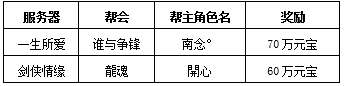 经过激烈的比拼,新服帮会争雄活动现已经圆满落幕。活动环节获奖帮会名单现已新鲜出炉,恭喜以下帮会帮主获得了此次活动奖励。