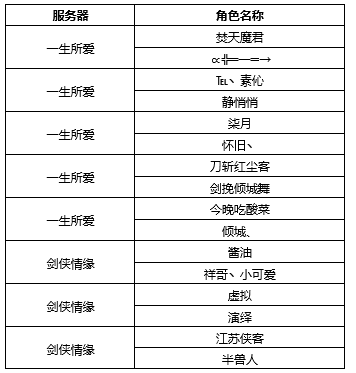8月22日至9月24日,新服(一生所爱、剑侠情缘)开启了情缘活动。新服夫妻参与情缘任务每人有机会获得5g定制情缘金条,参与新服同心榜可以获得极品护符谁与争锋等奖励。恭喜以下新服夫妻获奖。