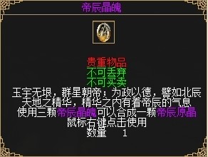 玩家右键使用帝辰晶魄,可以使3个帝辰晶魄合成1个帝辰原晶。