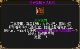 玩家右键使用帝辰晶魄任选礼盒,可任意选择帝辰晶魄或帝辰武器晶魄。