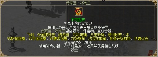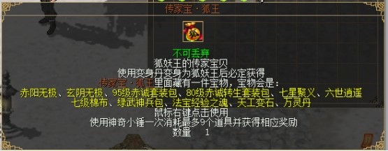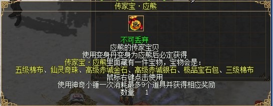 变身成应熊、妖狐王、冰羌王、草头大圣时,有一定几率获得其同名的传家宝。