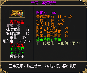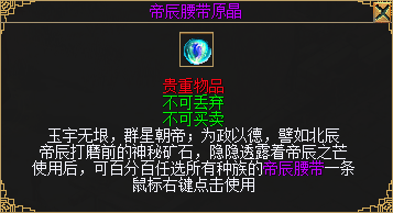 集齐45枚帝辰腰带晶尘,可合成1颗帝辰腰带原晶。开启帝辰腰带原晶可选择任意种族帝辰腰带1条。