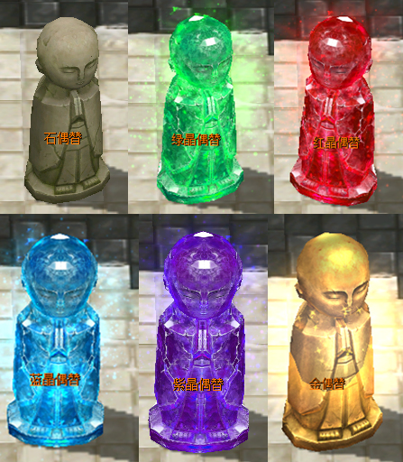 偶替分为石偶替、绿晶偶替、红晶偶替、蓝晶偶替、紫晶偶替、金偶替6个等级。每次刷新偶替时均有几率使该偶替升级或降级。