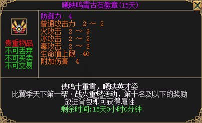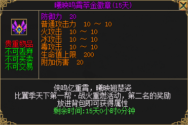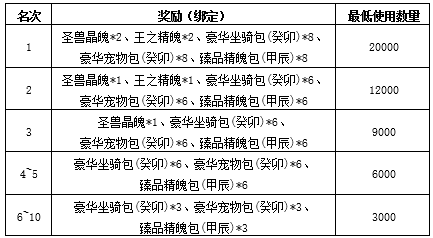 第10名级以下:1个背包护符:曦映鸣霄古石徽章(15天)。