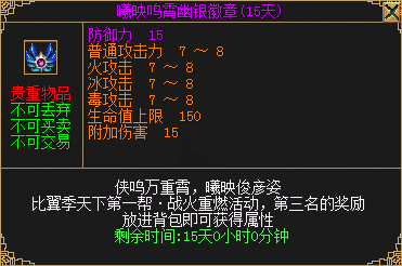 第3名:1个背包护符:曦映鸣霄幽银徽章(15天)。