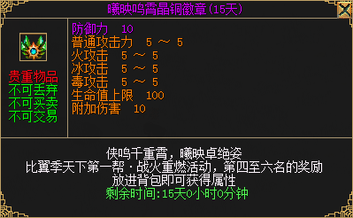 第4~6名:1个背包护符:曦映鸣霄晶铜徽章(15天)。