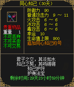 两人累计使用总数第二的侠侣\知己,两人每人可获得1个可转服永久护符:非我莫属(绑定);