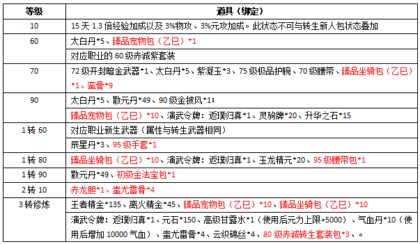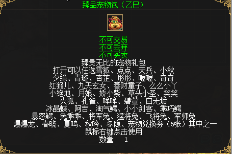 注:臻品坐骑包和臻品宠物包皆为任选包,奖励全部为绑定。