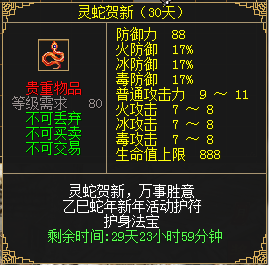 红利可兑换摩诃般若·藏碎片*1、刀剑壁•藏碎片、白泽之灵、貔大虎碎片、护符:金蛇献瑞(30天)、护符:灵蛇贺新(30天)、凤凰坐骑(30天)等道具