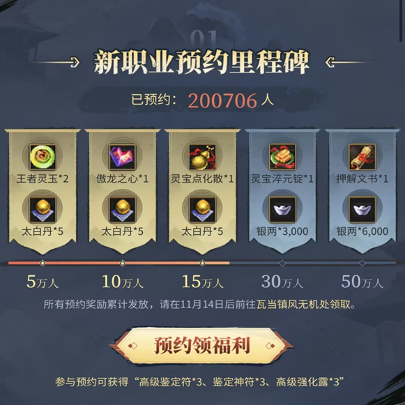 所有预约里程碑奖励累计发放,11月14日后可以前往瓦当镇风无机处领取!