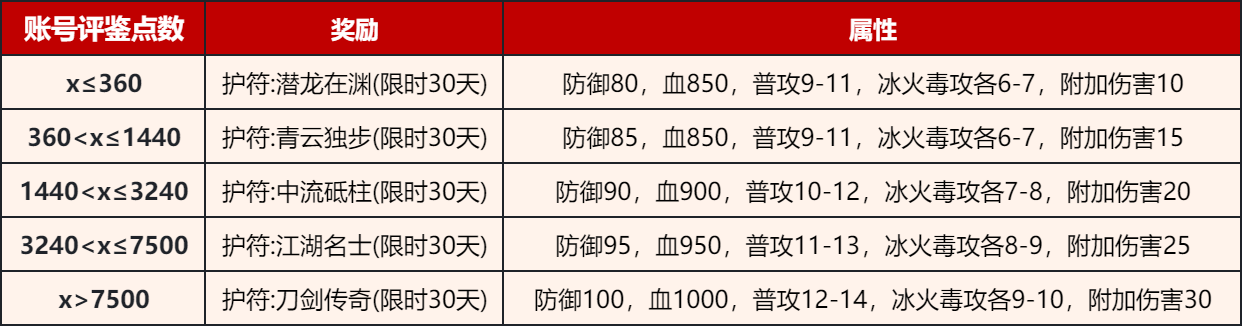21年长路相伴,纪念携手走过的每一步!测测你的账号值多少钱活动来了,账号评鉴点数根据【刀剑账号的注册时间】与【刀剑账号的历史贡献】来进行判断,评鉴结束后将根据评鉴点数档位可获得不同限定护符,包含护符:刀剑传奇、护符:江湖名士、护符:中流砥柱等相应好礼!