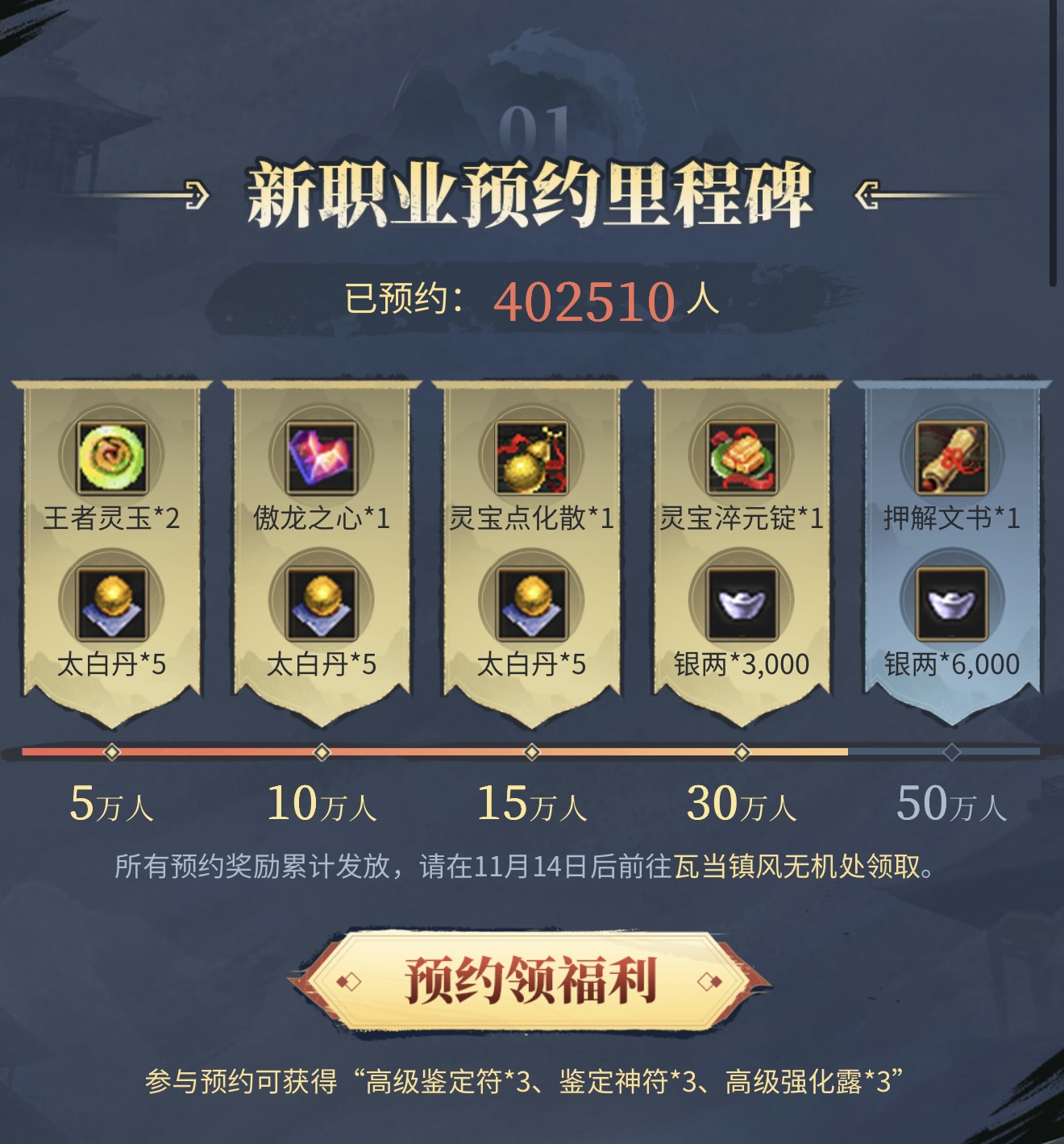 我们小提示:所有预约奖励将累计发放,请稻米们在11月14日后前往瓦当镇风无机处领取。